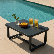 Apportez une touche moderne et élégante à votre espace extérieur avec cette table basse de jardin en aluminium. Idéale pour accompagner vos fauteuils ou salons de jardin, elle offre à la fois résistance aux intempéries et légèreté. Son design épuré s'intègre parfaitement à tout type de décor extérieur.